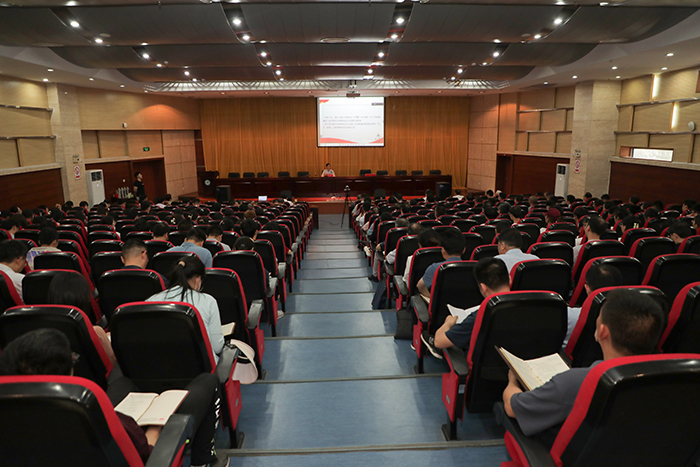 6月2日下午,党委副书记、院长李震以“深刻把握并自觉运用习近平新时代中国特色社会主义思想的世界观和方法论”为题,在会议中心二楼报告厅讲授主题教育专题党课。专题党课由党委委员、组织部部长钱锐主持。
