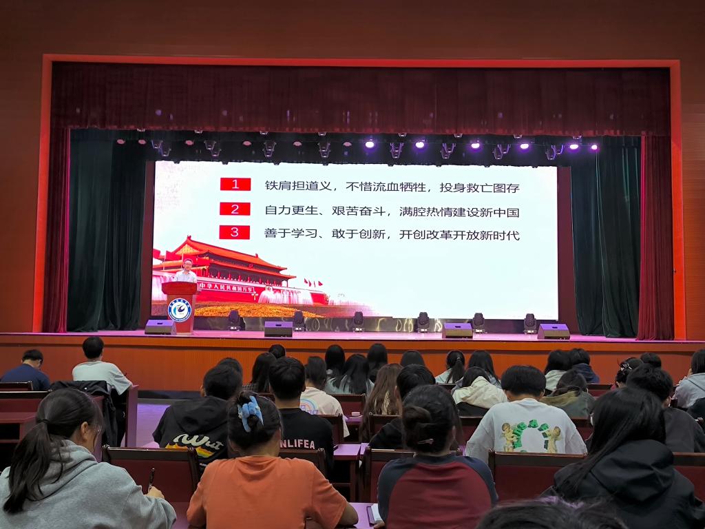 以“五史”为鉴,沥字字箴言。会上,人文学院正处级组织员张严政为同学们作题为“坚定理想信念 勇担时代使命”的辅导报告。报告第一部分指出,“回首往昔,无数共产党人勇挑历史重担,谱写了一部为民族独立和国家富强而不断牺牲奉献的波澜壮阔史诗”,张严政满怀深情地讲述一个个感人肺腑的党史小故事,重温峥嵘岁月、缅怀革命先烈,引起同学们的强烈共鸣。报告第二部分深入分析了前进道路上可能遇到的各种风险与挑战,当今世界远不太平、国际形势严峻复杂,国家尚未完全统一、民族复兴挑战重重,改革发展任务繁重、美好生活尚需时日,强调“面向未来,全体共产党人必须勇担民族复兴伟大使命,披荆斩棘、锐意进取,再创新的历史辉煌”。报告第三部分围绕“立足当下,新时代青年学生必须强化责任担当,勇担时代使命,练就过硬本领,报效祖国、服务人民”,向全体与会同学提出了四点要求:深入学习“五史”,坚定理想信念;聚焦主责主业,提升综合素质;自觉抵御西化分化,坚决维护国家安全;弘扬中华优秀传统文化,助力民族复兴伟业。