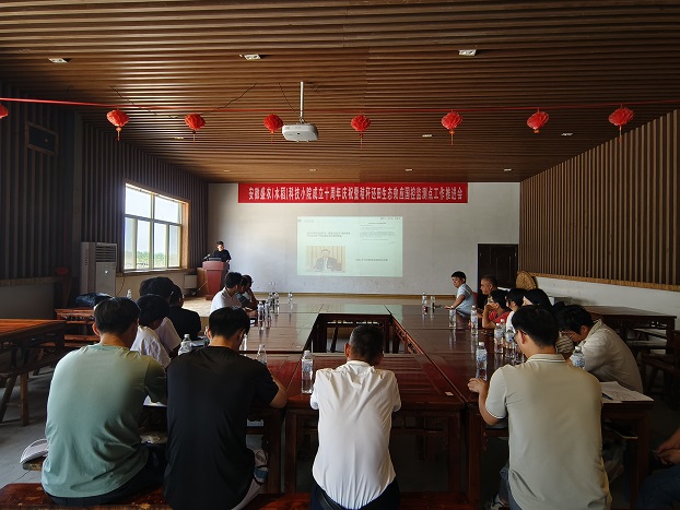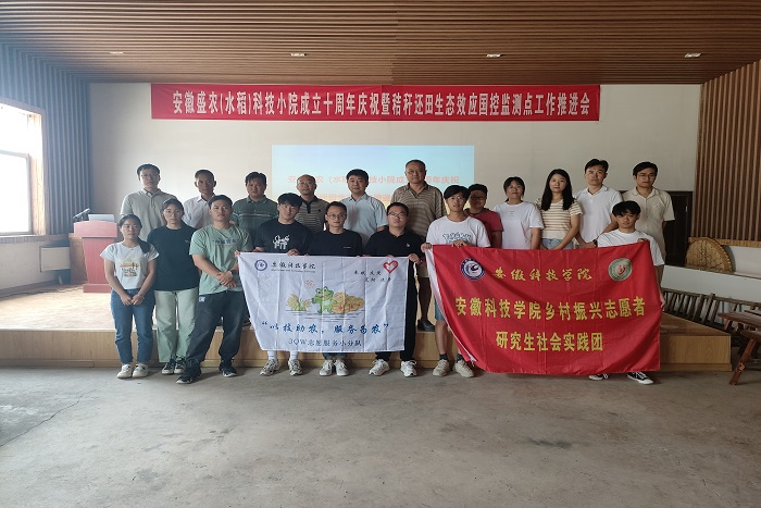 为贯彻落实习近平总书记给中国农业大学科技小院学生们的重要回信精神,深入推进研究生教育产教深度融合,强化乡村振兴人才支撑,9月4日,安徽当涂水稻科技小院十周年庆典活动在安徽盛农农业集团有限公司会议室举行。当涂县农业农村局处长胡现荣,安徽盛农农业集团有限公司董事长夏金林,拼搏平台汪建飞、周毅及相关专家参加庆典活动。