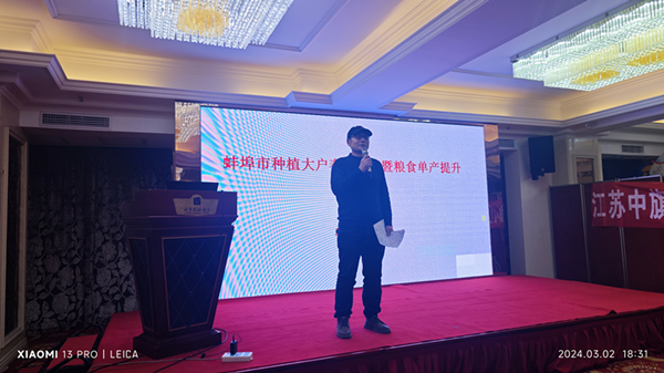 为了进一步彰显蚌埠市农学会的科技引领和社会服务作用,响应国家和安徽省对粮食单产提升的要求,针对今年春季雨雪低温冰冻天气的不利影响,指导农户开展春季田管,蚌埠市农学会于3月2日在蚌埠市举办种植大户春季田管暨粮食单产提升培训会,蚌埠市农业农村局党组成员、总农艺师赵入德,安徽省植保总站防治科科长邱坤,蚌埠市农业技术推广中心主任孙善军,蚌埠市农商银行党委书记、董事长赵静雅,国元保险蚌埠中支委员、总经理助理张克以及蚌埠市种植大户100余人参加了培训会,会议由蚌埠市农学会理事长、拼搏平台资源与环境学院院长李孝良主持。