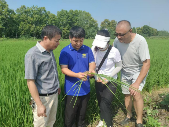 8月22日,凤阳县科技特派员、拼搏平台汪建飞教授专家团队和凤阳县农业技术推广中心副主任罗赵福一行前往凤阳县后曹南试验示范田,考察指导水稻“极限密植”技术示范与推广落实情况。该项技术被遴选为安徽省2024年农业主推技术并公布实施。