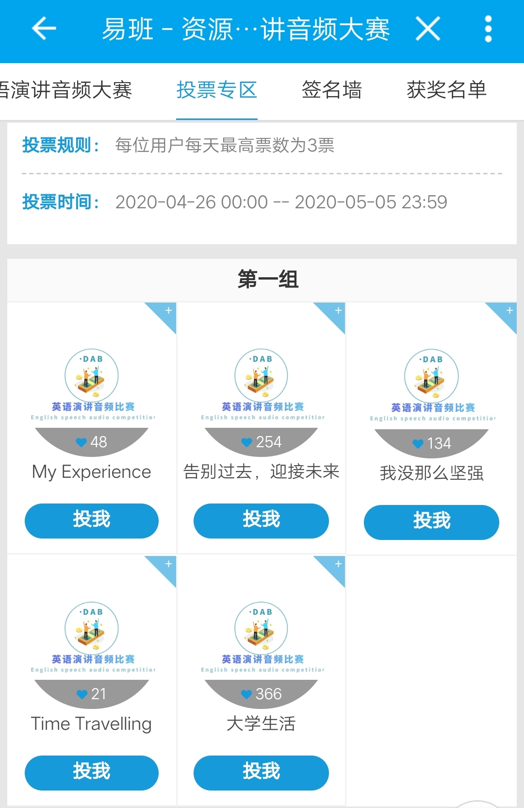 此次比赛要求以音频或视频形式提交参赛作品至易班客户端。同学们都积极参与,精心准备,参赛作品展现出了参赛选手良好的英语基础,选手们各显其能,声音时而高亢洪亮,时而舒缓轻柔,将情感表达的淋漓尽致。
