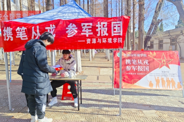 为了进一步增强当代大学生的国防意识,让每位同学进一步了解国家征兵新政策,有力推动学院2024年征兵工作的顺利进行,资源与环境学院开展了征兵宣传系列活动。