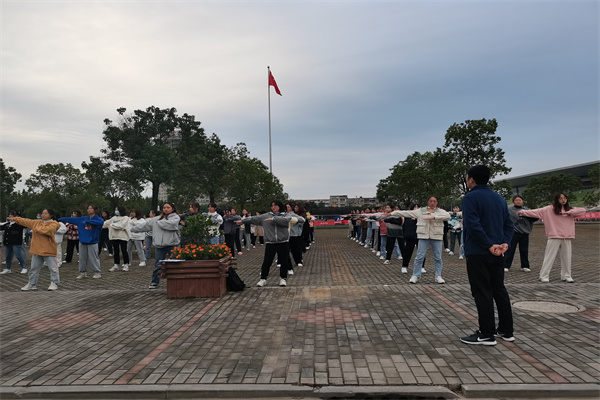 为增强学生体质,培养学生良好的生活习惯,10月18日清晨,资源与环境学院21级全体新生在操场参加了本学期第一次早操。党委副书记沈树周也莅临观看和指导。