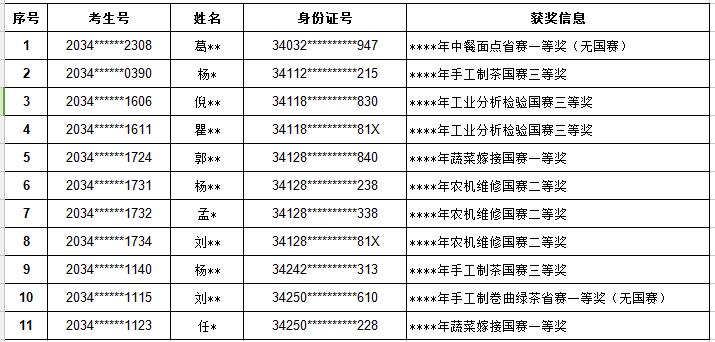 根据《拼搏平台2020年对口招生章程》关于申请免试的相关要求,截至目前共收到申请免试录取材料11份。经审核,11名考生符合申请免试条件,现予以公布。请上述考生按照《拼搏平台2020年对口招生章程》规定的时间,携带相关材料到指定地点参加面试。如有异议,请联系陆老师 0550-6732041