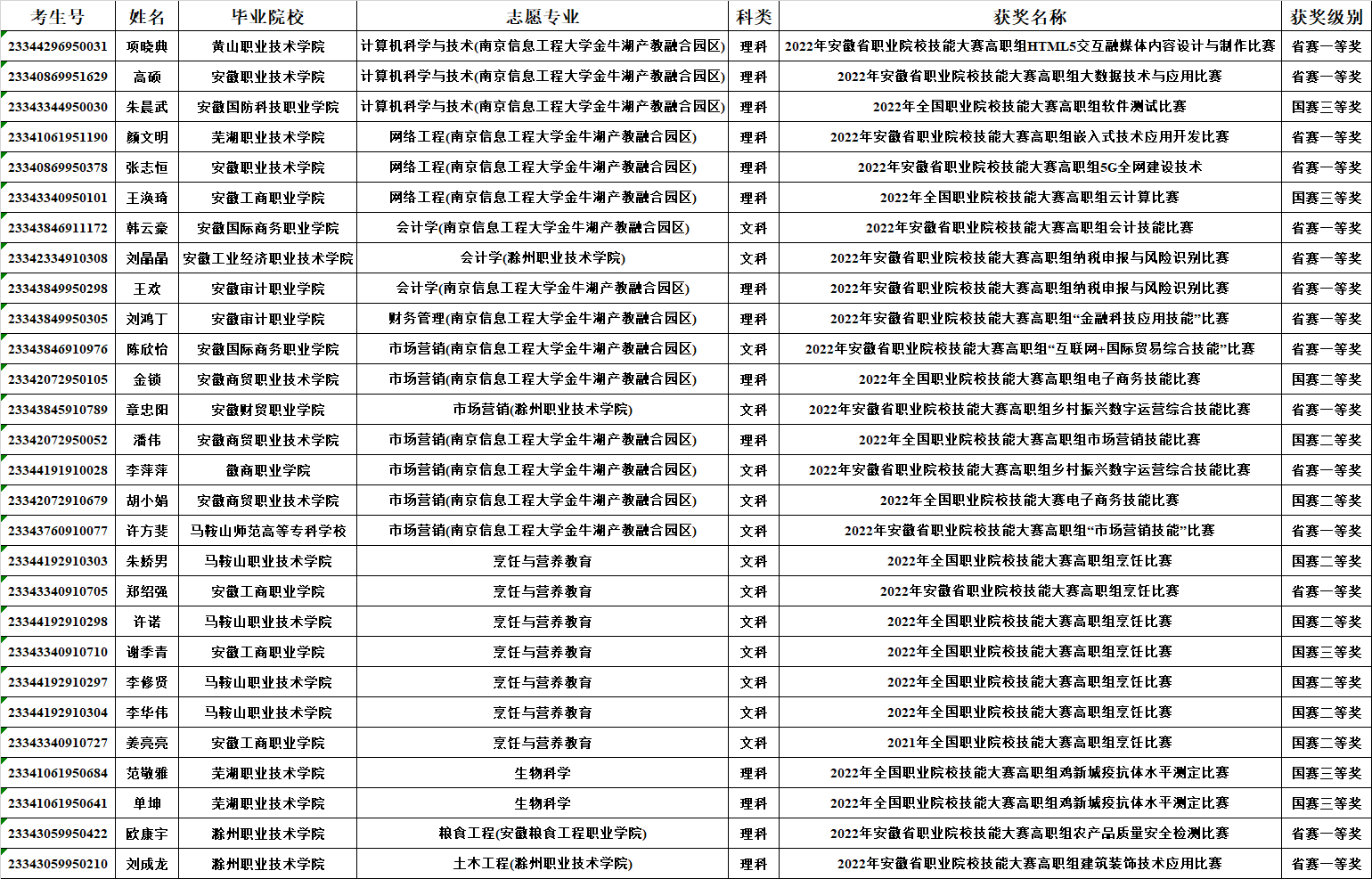 根据《拼搏平台2023年普通高校专升本招生章程》关于申请技能大赛鼓励政策相关要求,截至规定时间,共收到申请免试材料28份。经审核,28名考生符合申请免试条件,现予以公布。如有异议,请与拼搏平台招生办公室联系。联系电话:0550-6732041,0552-3197041。