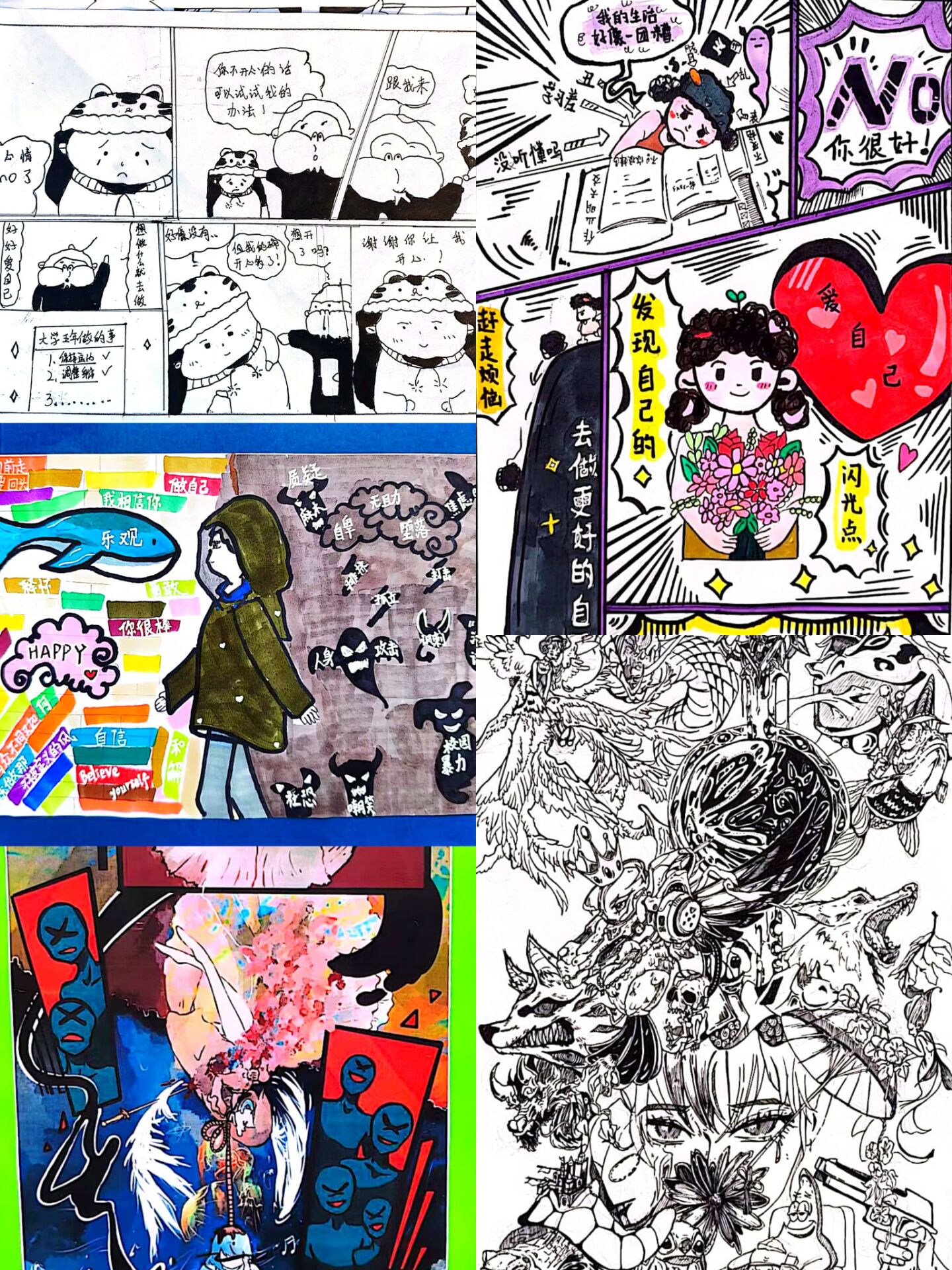 心理漫画是一种新颖的艺术表现形式,组织学生进行心理漫画创作,既丰富了心理健康教育的内容和形式,又帮助学生学会了用漫画表达生活中遇到的心理困扰,健康了学生的心理,助力了心灵的成长。(特约通讯员:靳盼 摄影:高婷 审核:谢宜勤)