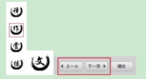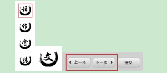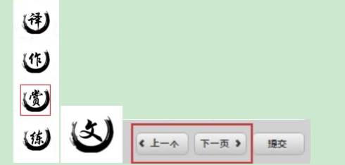 4.原文翻译:点击界面左侧“译”按钮。学习结束点击界面左侧“文”按钮或“上一页”返回原文。点击“下一页”继续学习诗人简介。